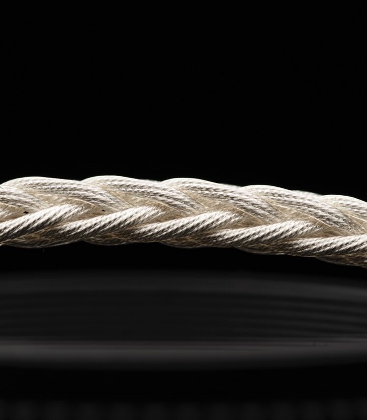 The Meze copper-silver-plated, copper PCUHD cable is braided and wears a white-silver colored sleeve (TPE). The cable is oxygen-free and has a purity of 99.99 percent (5 ppm or less).