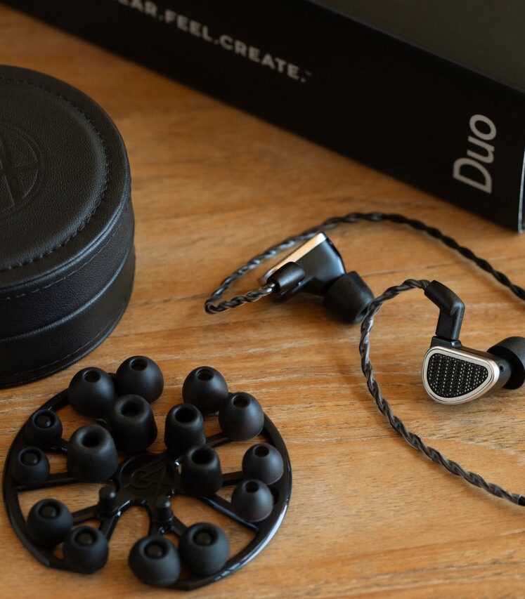 Duo is a two driver hybrid universal in-ear monitor (UIEM). Following Trió and Fourté, Duo is also a fully tubeless design, with the added benefit of being one of the worlds only semi-open back UIEMs. Built with the complete Tia™ System, Apex Core, Wave Sync, and LID, Duo presents 64 Audio’s signature balanced sound in a whole new way. The simple audio design captures the listener’s auditory senses while forgetting they’re wearing IEMs in the first place.